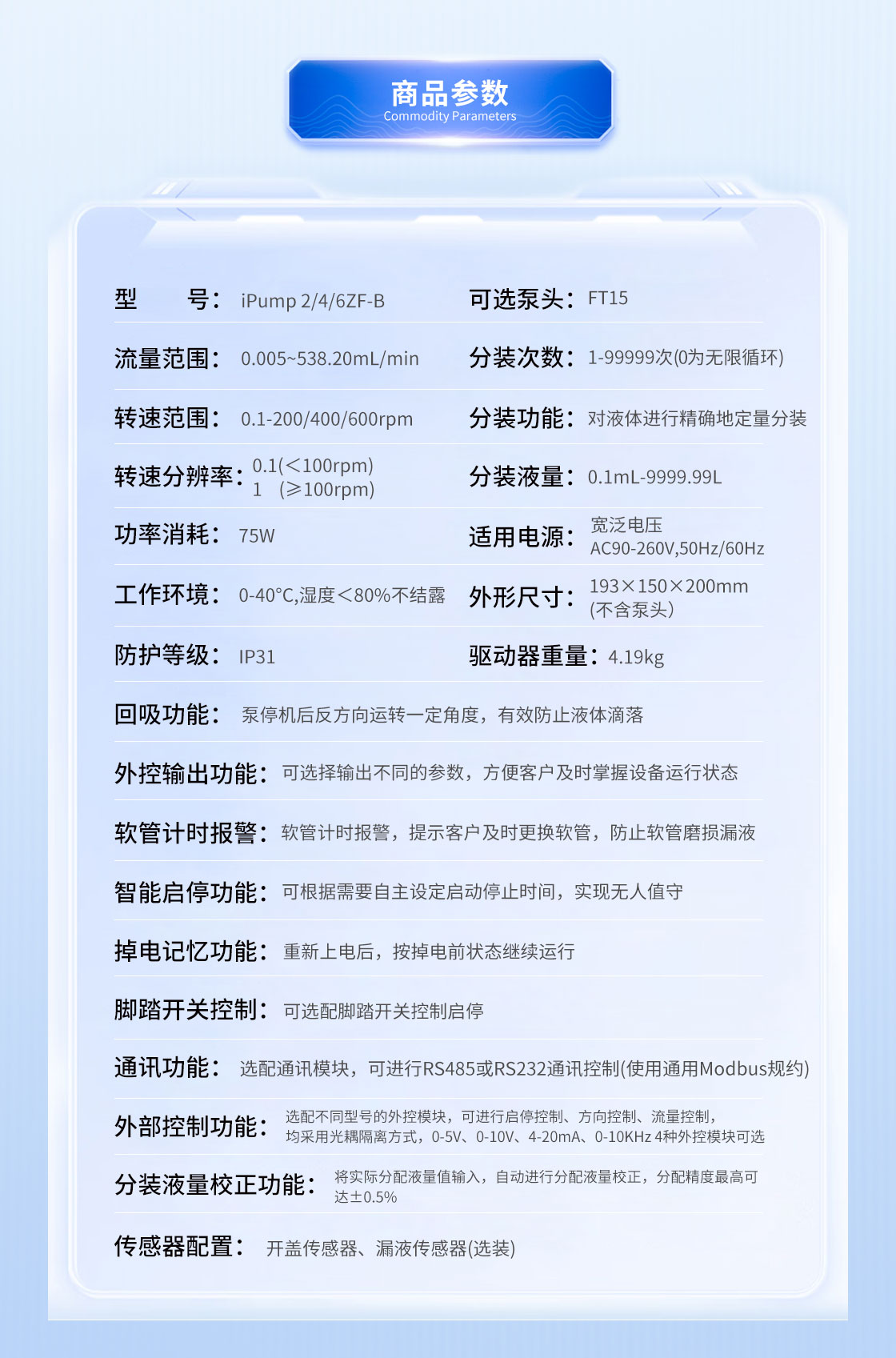 ◆回吸功能:泵停機后反方向運轉(zhuǎn)一定角度,有效防止液體低落