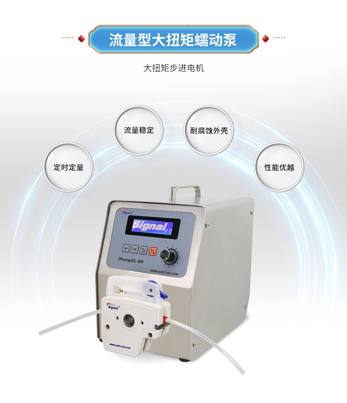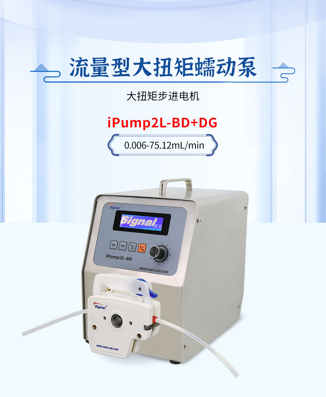 2.大扭矩步進(jìn)電機(jī)驅(qū)動(dòng),適合多泵頭串聯(lián)使用;