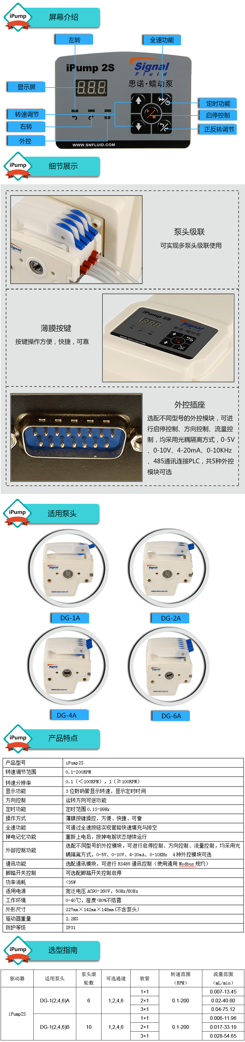 ? ? ?1.流量范圍:0.007-75.12mL/min ? ? ?2.定時功能:定時范圍0.1S-99Hr ? ? ?3.步進電機驅動,128倍細分,高精度,低振動,超靜音 ? ? ?4.考究的工業設計,外觀時尚、小巧,做工精細 ? ? ?5.采用進口電機驅動芯片,性能優越 ? ? ?6.線路板全部三防漆處理,防腐、防潮